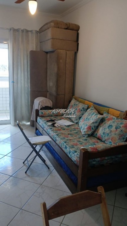 Apartamento mobiliado, 180m da praia no Centro de Mongaguá, 57,47 m² privativos, 1 quarto, 1 vaga, sacada, aceita financiamento bancário!