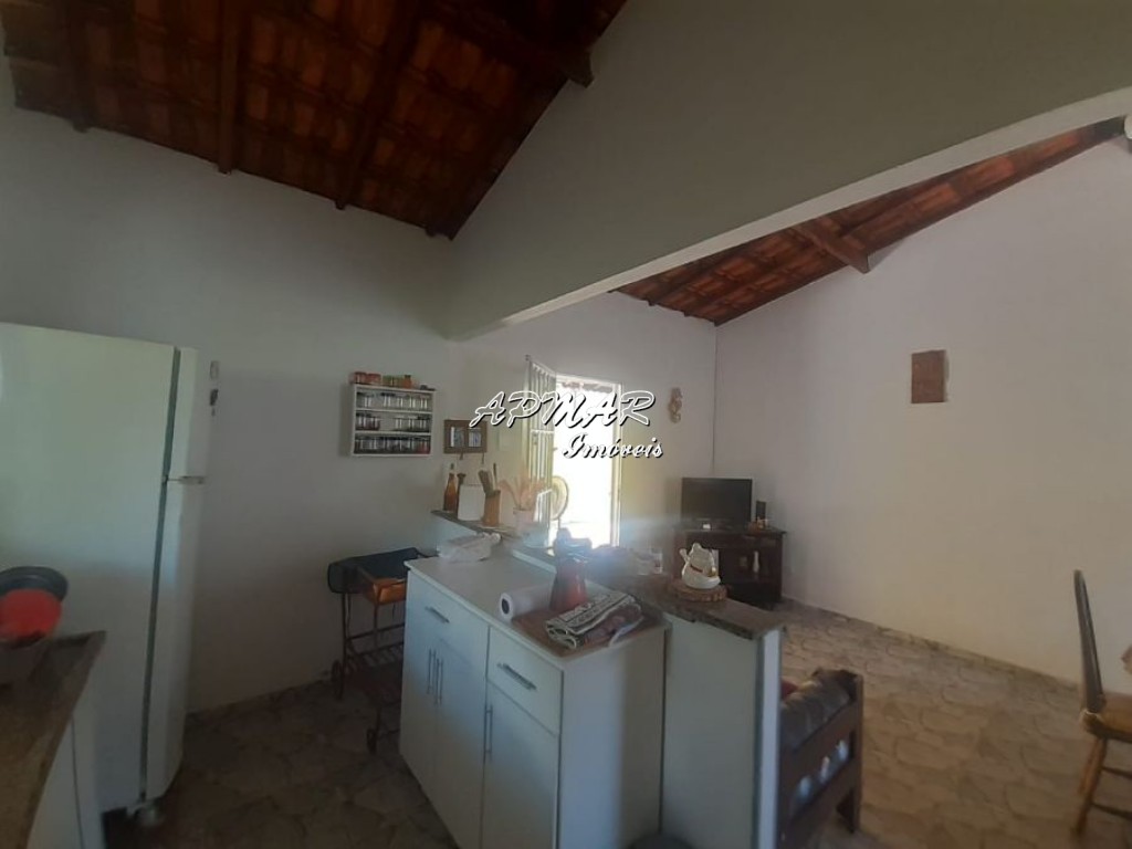 O imóvel possui um quarto, sala e uma cozinha americana que otimiza o espaço interno. Com dois banheiros, a casa atende com conforto às necessidades diárias. O ponto alto é o vasto quintal, onde um jardim com pomar se destaca, com pés de caqui, uva, amora, limão e outras frutas, criando um cenário perfeito para o lazer e a conexão com a natureza.